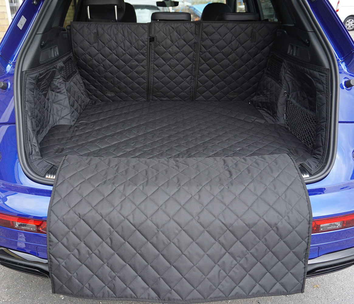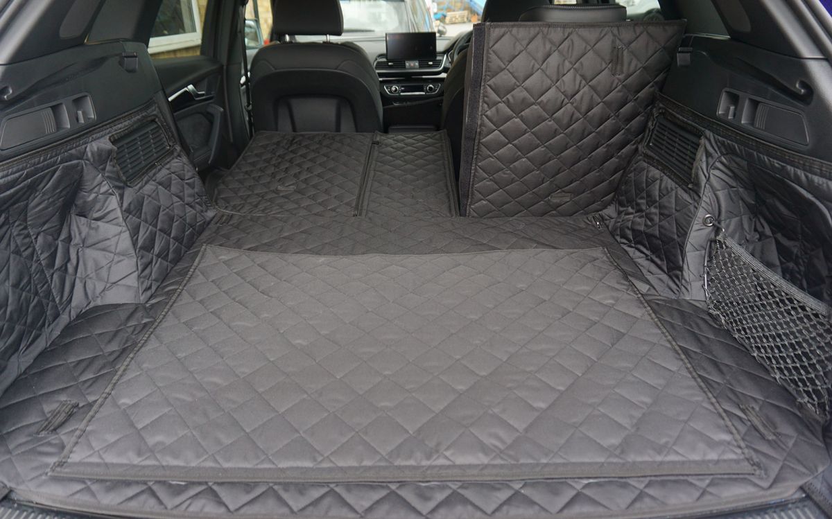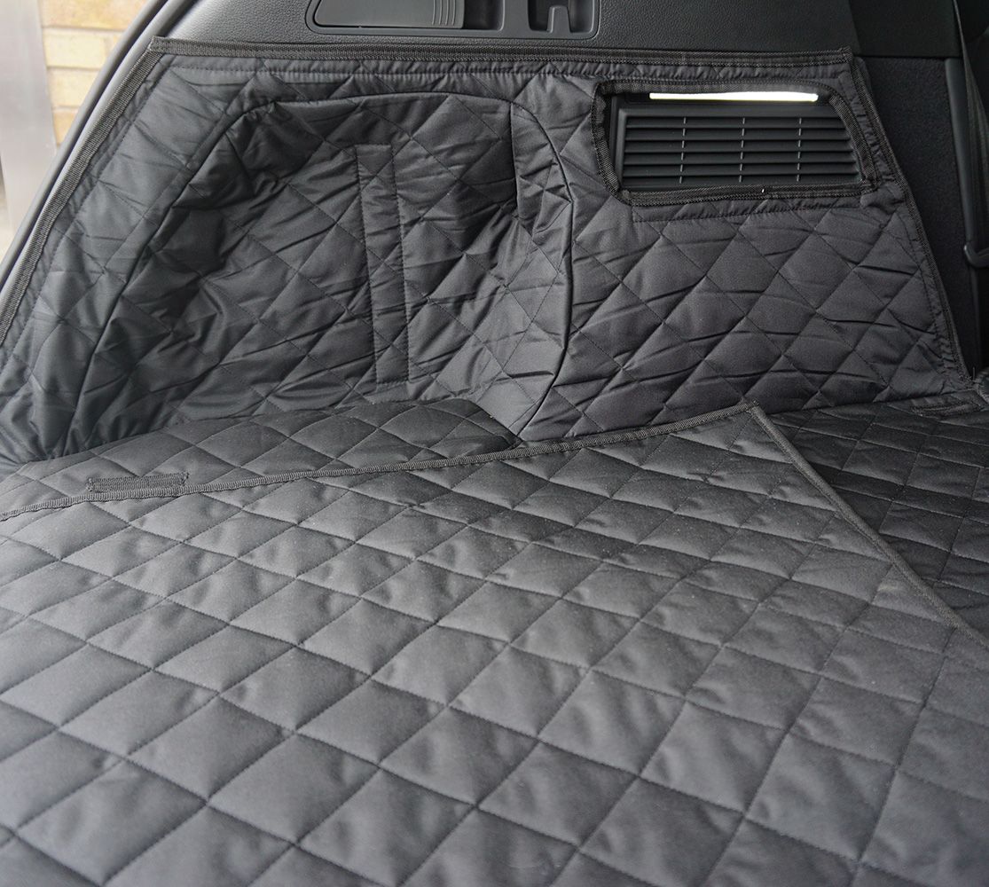 We make this liner in our smart quilted material. It is available in Black, Grey, Navy, Green and Red and comes with a matching trim colour. If you'd like to add your own stamp, why not add embroidery? This is placed on the 'Bumper Flap', which folds out to cover the bumper of the car. A Bumper Flap is a great choice for pet owners.