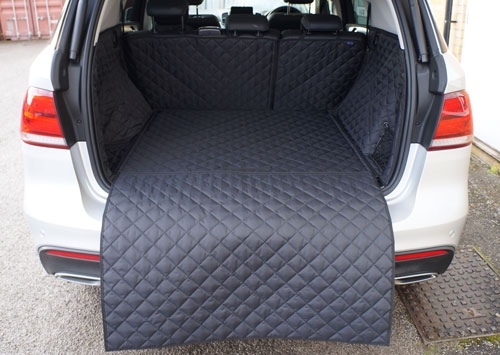 We make this liner in our smart quilted material. It is available in Black, Grey, Navy, Green and Red and comes with a matching trim colour. If you'd like to add your own stamp, why not add embroidery? This is placed on the 'Bumper Flap', which folds out to cover the bumper of the car. A Bumper Flap is a great choice for pet owners.
